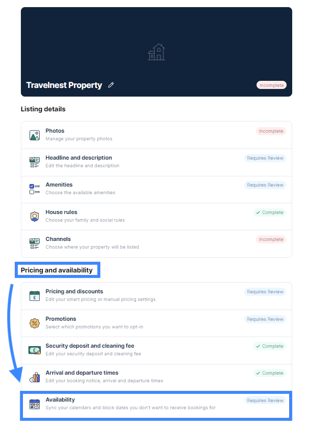 - The selected property’s calendar will then be revealed for you to review or edit.