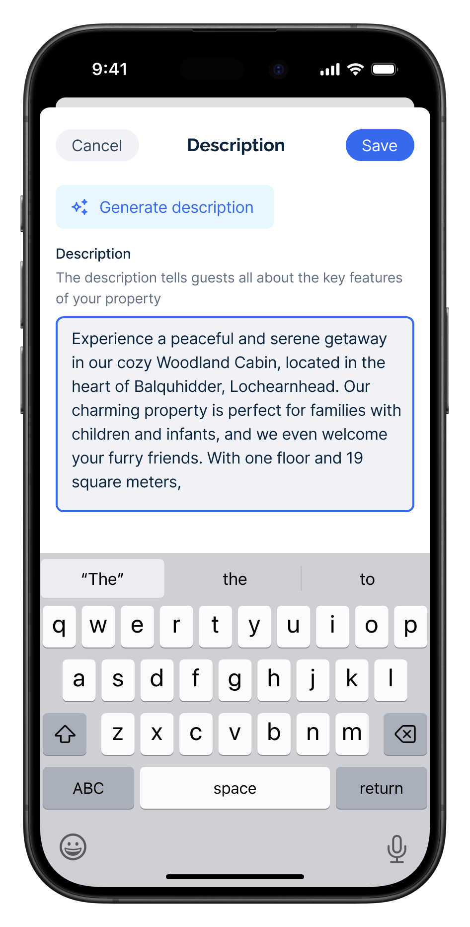 - A text box will appear where you can update the description of your property. Once done, save your changes.