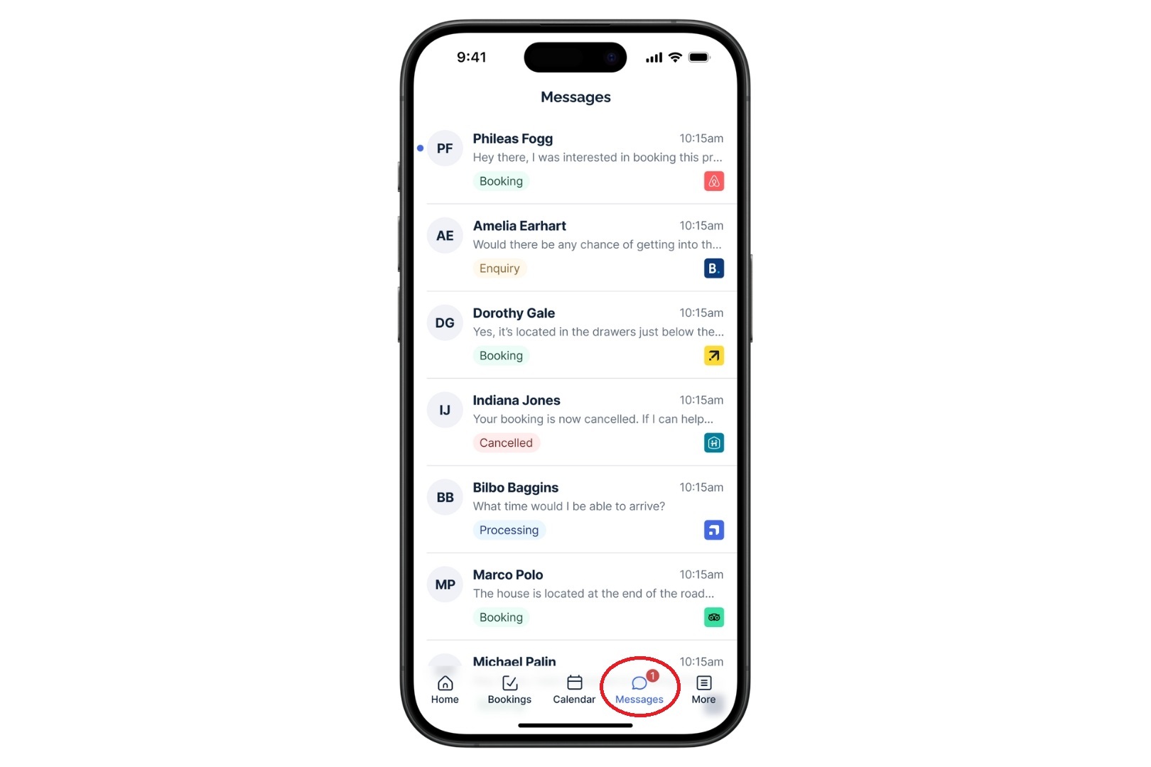 - At the bottom of the screen, tap on the Messages tab. This is where all your guest communications are organised.