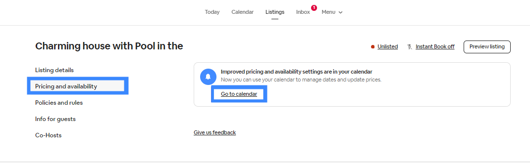 If you’ve just created a Travelnest account and want to sync calendars before your property is published, you can find your calendar under Pricing and availability > Availability.