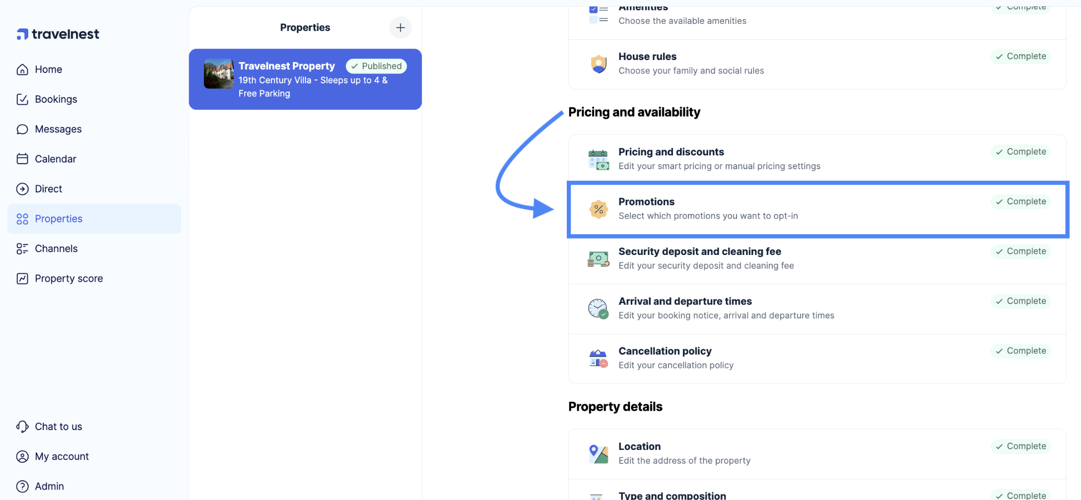 A badge will appear next to your property when a promotion is applied, and listings with active promotions are often ranked higher in search results.