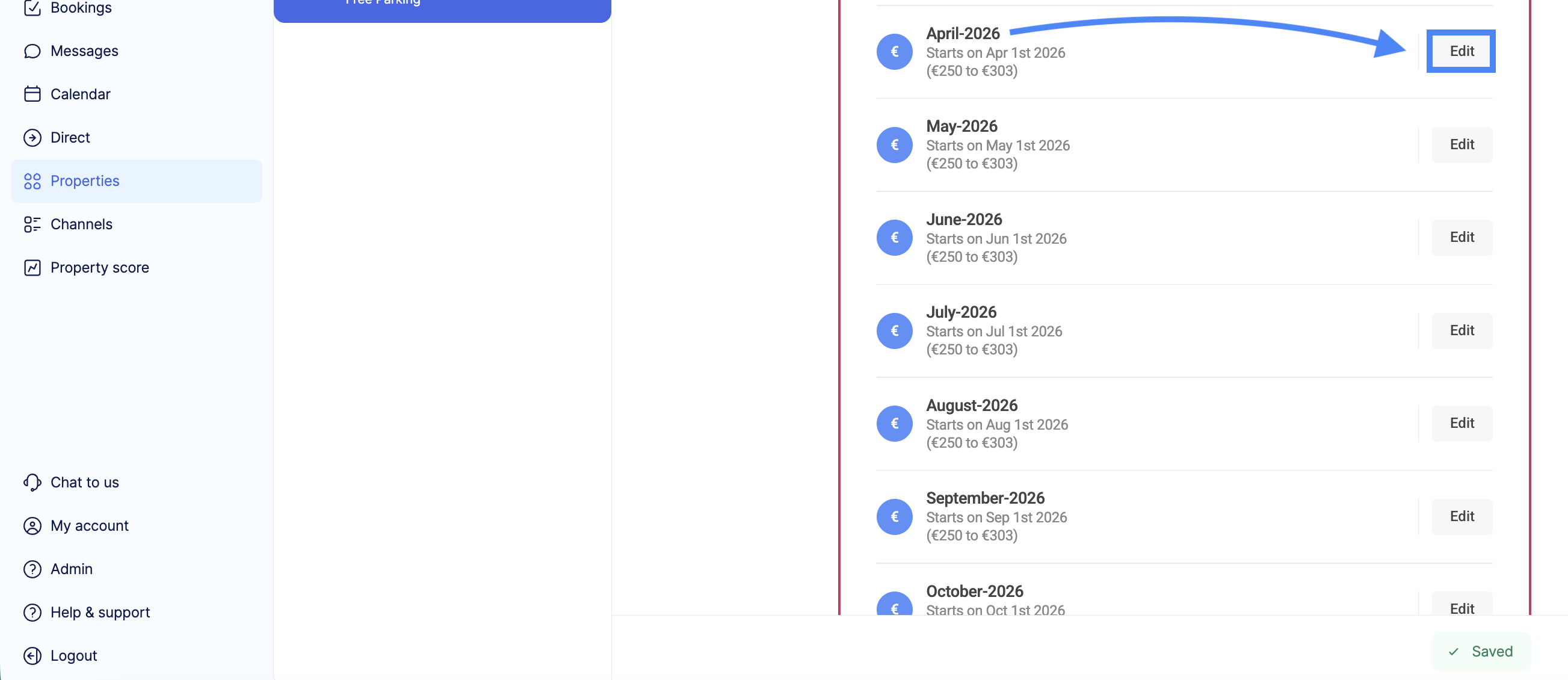 - If you have added your pricing manually, select the month you want to apply the discount to, then click Edit. For example, here we’ve selected April.